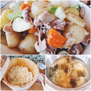 ☆玄米入りご飯☆えのきの味噌汁☆塩肉じゃが