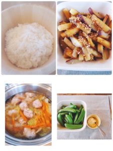 ☆玄米入りご飯☆肉団子と春雨スープ☆さつま芋のきんぴら☆スナップエンドウ