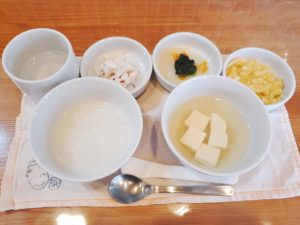 【中期】☆7倍粥☆豆腐のだし汁☆イサキの煮魚☆根菜のほうれん草添え☆バナナ