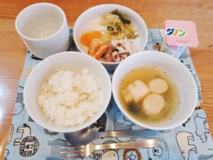 本日の仕入れは【大/小のイサキ・マス・生青のり…そしてタコで~す🐙】 足がクルリンッと丸まった真っ赤なタコに興味津々の子ども達でした😊 「食べてみた~い😋」と楽しみにお魚の日ランチを味わっていました☆