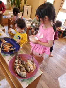今日は〝お魚の日〟 どんなお魚を仕入れてきたかというと・・・みんな本物のお魚が見れるのを楽しみに待っています♪