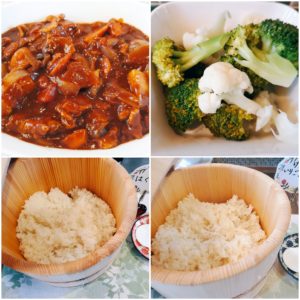 ☆ハヤシライス☆彩りスープ☆ごぼうサラダ☆茹でブロッコリー&カリフラワー☆小魚☆リンゴ