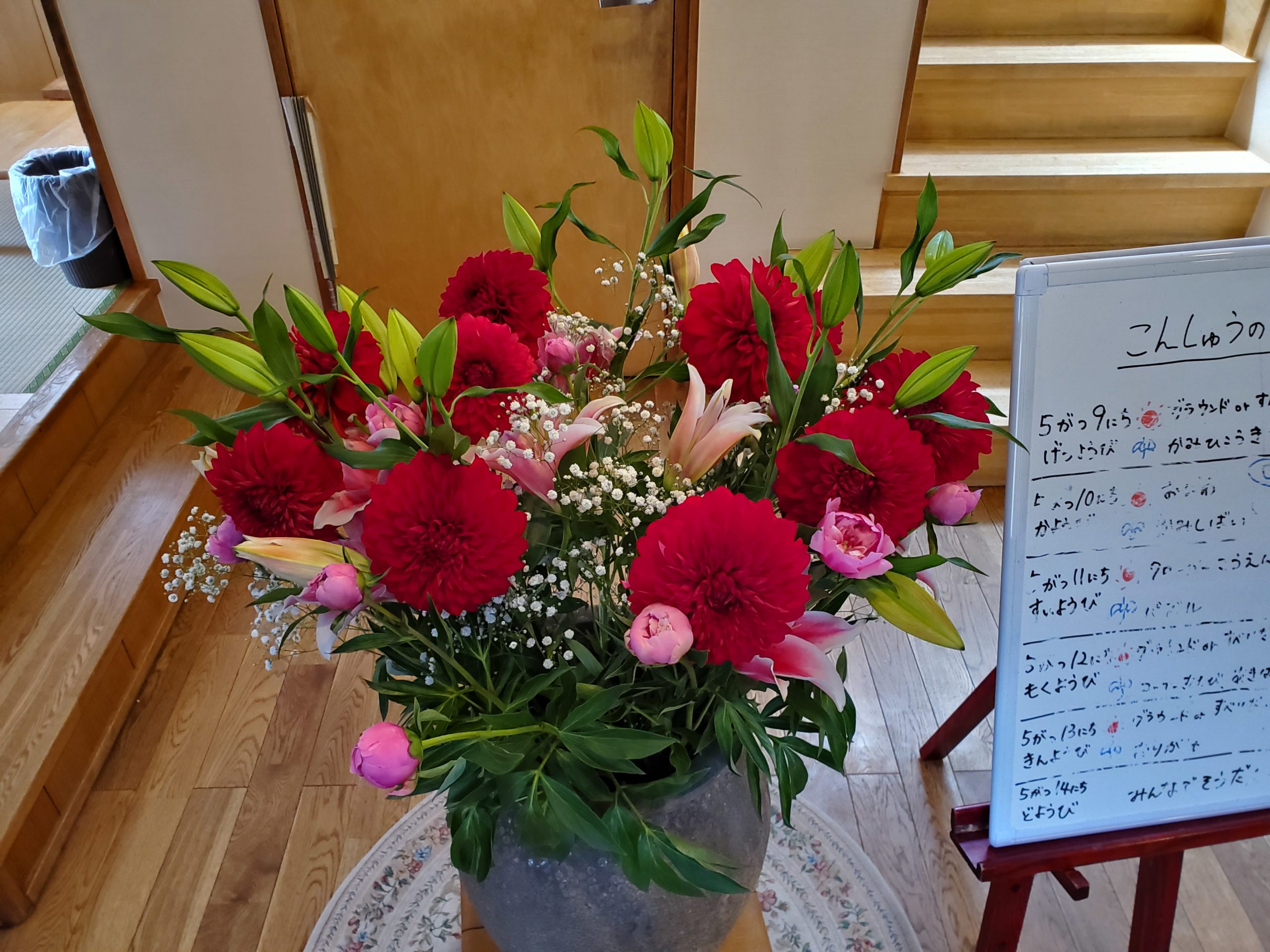 毎週火曜日お花屋さんからどんぐりの玄関にお花が届きます。
