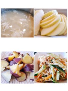 ☆中華コーンスープ☆青りんご☆蒸かしさつま芋☆切り干し大根と胡瓜のサラダ