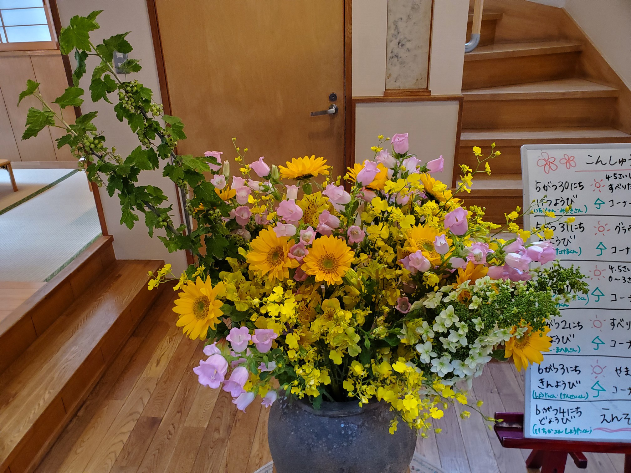 毎週火曜日お花屋さんからどんぐりの玄関にお花が届きます。