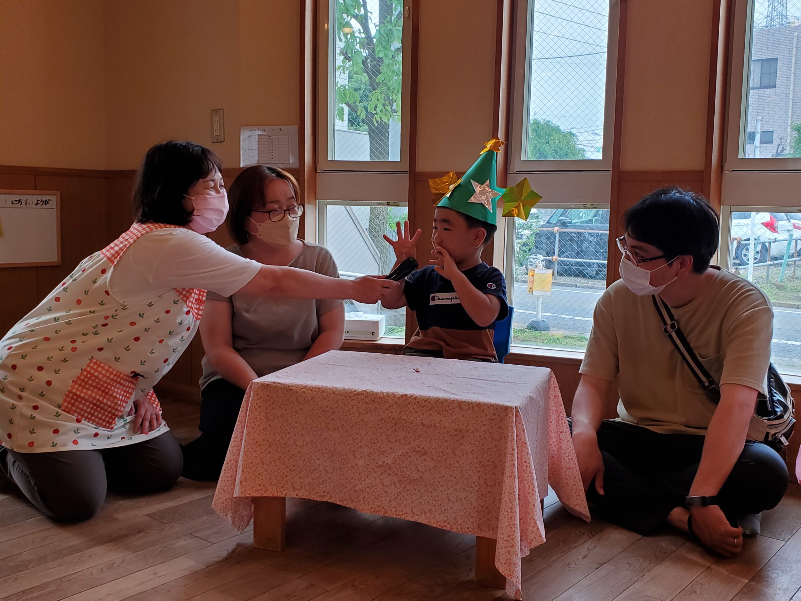 パパとママにも来ていただきスペシャル席に座るとご機嫌なひろと君でした!ひろと君の好きな物をたくさん知る事ができ、これからもっともっと色んな顔を見せてくれるんだろうなと楽しみです!同い年のお友達からバースデーカードやお花をプレゼントされるとちょっぴり照れた表情を見せていました☺