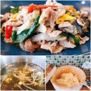 ☆豚肉とピーマンの味噌炒め☆玄米入りご飯☆もやしの中華スープ