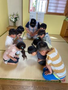 いよいよ4.5歳児の部活がスタートしました😊トップバッターは将棋部です!背筋をピンっと伸ばし始まりの挨拶。「宜しく御願いします!」と元気に始まりました☆ちょっぴり緊張した表情の年中さんや初めて将棋に触れるお友達は本物の将棋盤や駒に「わぁ~」と、声を上げて喜んでいました。