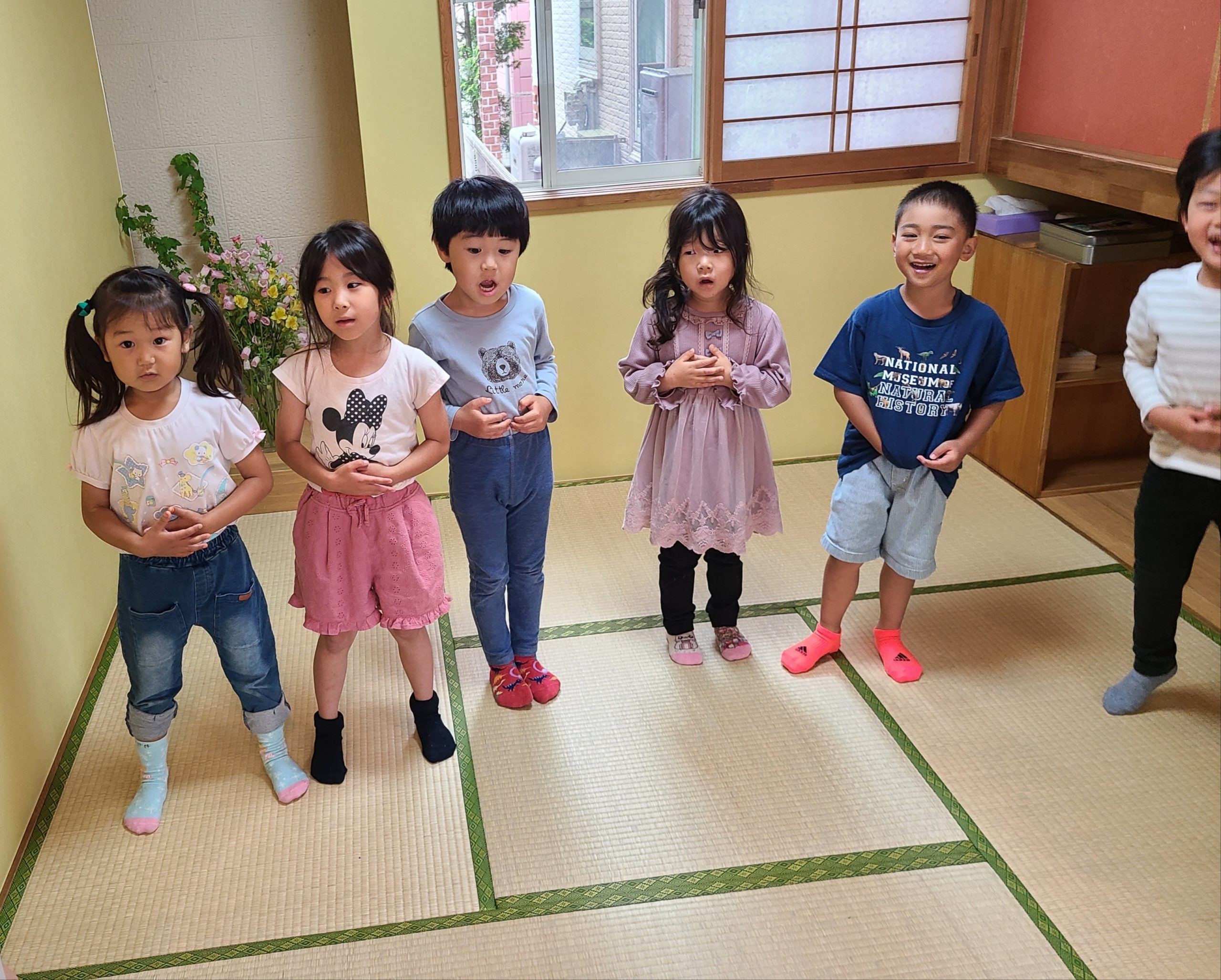 そして初めての発声練習をしました。「お腹から声を出すときれいな声が出るんだよ~」と伝えると早速やってみていた子ども達です😊その後はみんなで輪になって自主練習をしていた子ども達・・・やる気満々です!!