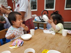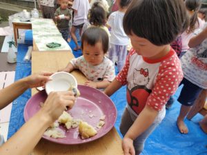 獲れたてのじゃが芋は外で蒸かしてもらいホックホクのじゃが芋をみんなで食べました🥔