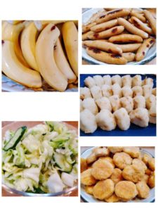 ☆蒸かしじゃが芋☆ウインナー☆鮭おにぎり☆ナゲット☆バナナ☆キャベツの浅漬け