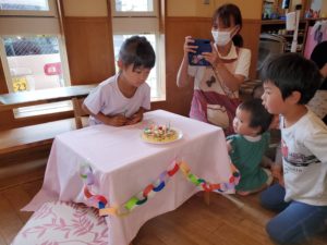 その後はケーキとカードを貰ったり、おやつをいっぱい食べて楽しいお誕生日会になりました!