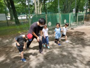 まずはストレッチで身体ほぐして・・・その後はスタートの練習をしました!!スタートダッシュのコツを伝えると・・・すごい勢いで上達していた子ども達です😊