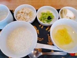 ☆5倍粥☆白菜とコーンのスープ☆新じゃがと鶏ひき肉のだし煮☆刻みレタスのり添え☆バナナ
