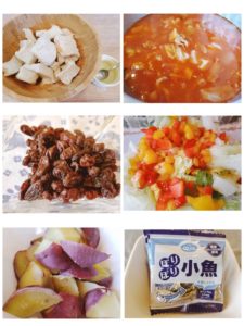 ☆手作りパン☆豚肉と野菜のトマトスープ☆レーズン☆彩りサラダ☆蒸かしさつま芋☆ポリポリ小魚