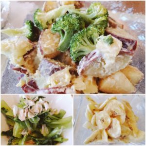 ☆さつま芋とブロッコリーのサラダ☆小松菜のお浸し☆バナナチップ