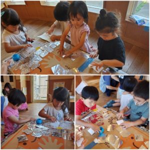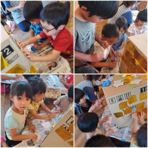 七夕まつりに向けて年長さん達と相談してきたお神輿作りが始まりました。朝の集いで役割分担を伝えてもらいお神輿作りに取りかかる子ども達。第一弾は年長さんもそれぞれに分かれて小さい子達に教えてあげながら進めました😊みんな任された所を最後までやり遂げていました☆