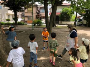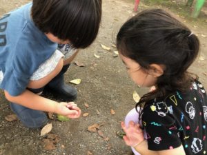 公園ではどんぐりのお庭ではあまり見かけないような虫を見つけるとみんなで「見てみて!」と寄って見たり