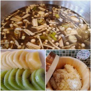 ☆もずくとえのきの味噌汁☆玄米入りご飯☆キウイフルーツ