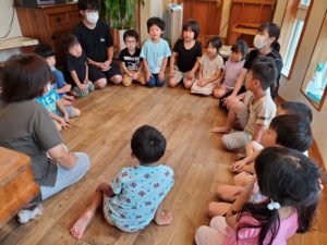 ☺最後に朝の集いで一日を振り返りました。それぞれの楽しい思い出が心に残っているようです(^^♪
