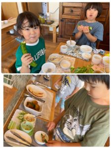 いい音立てて食べていました♪そんな様子を見て普段キュウリを食べない男の子もつられて味噌をつけて食べてみてました✨