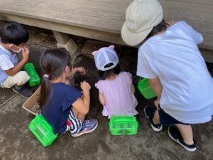 今日も朝からよく晴れました!お庭のアサガオが花を咲かせ夏の風景を彩っています。今日はそんな夏の風景を楽しみながらお庭で虫探しに夢中な子どもたちでした☆