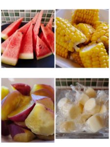 ☆スイカ☆トウモロコシ(大きい子たちが育てました)☆蒸かしさつま芋☆キャンディーチーズ