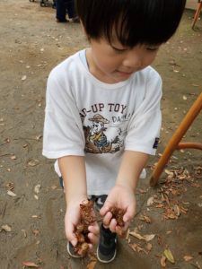 すべり台公園ではセミの抜け殻を拾ったり、木にとまってるセミを間近で見たりして楽しみました♪