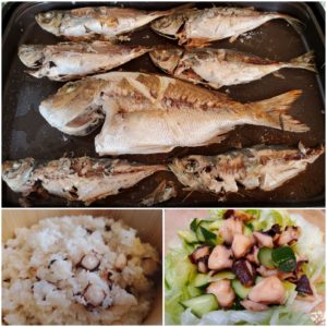 ☆鯛・鯵の塩焼き☆タコ飯☆タコサラダ