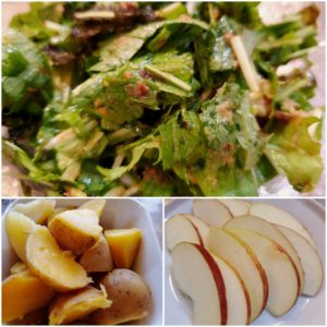 ☆水菜のサラダ☆蒸かしじゃが芋☆りんご