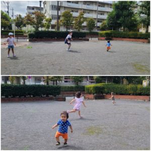 お兄ちゃんお姉ちゃんが思いっきり走っている様子を見て・・・小さい子達も仲間入り♬心地よい気候に思わず身体を動かしたくなっちゃいますよね😊