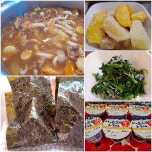 ☆カレーうどん☆塩おにぎり☆粉ふきじゃが芋☆ほうれん草としらすのお浸し☆ヨーグルト