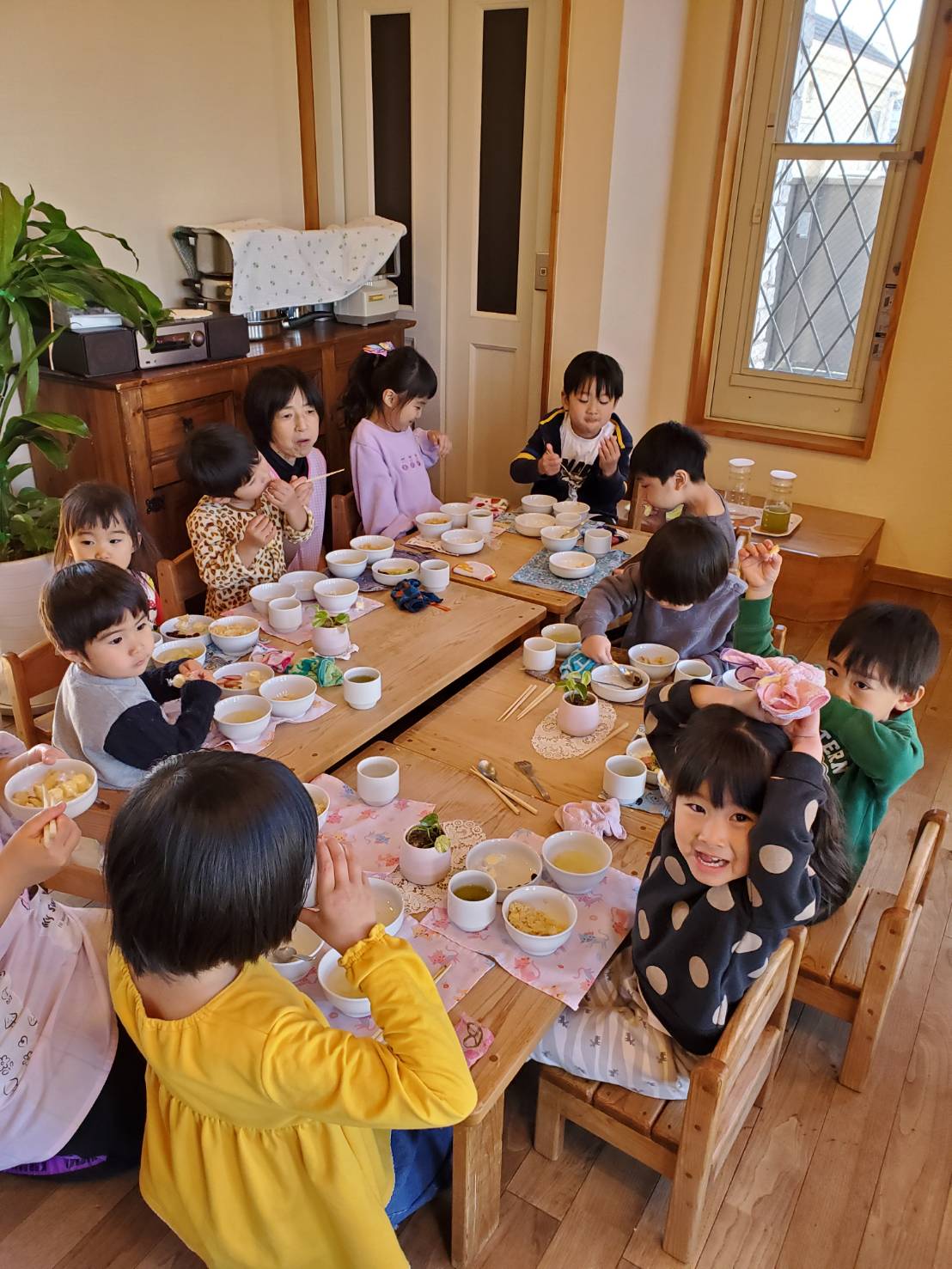 今日は土曜日で人数が少なかったので輪になりランチを食べました♪会話もはずんでいました~(^^