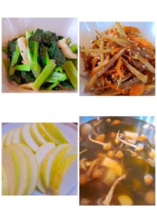☆黄りん☆なめこの澄まし汁☆金平ごぼう☆青梗菜と油揚げ煮浸し