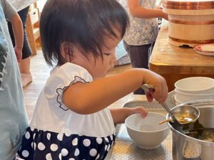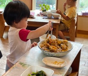 お部屋ではお月様を作ったり、団子を作ったり、ブロックで遊んだりして過ごしました。