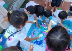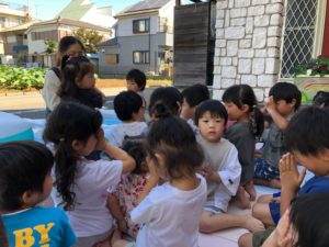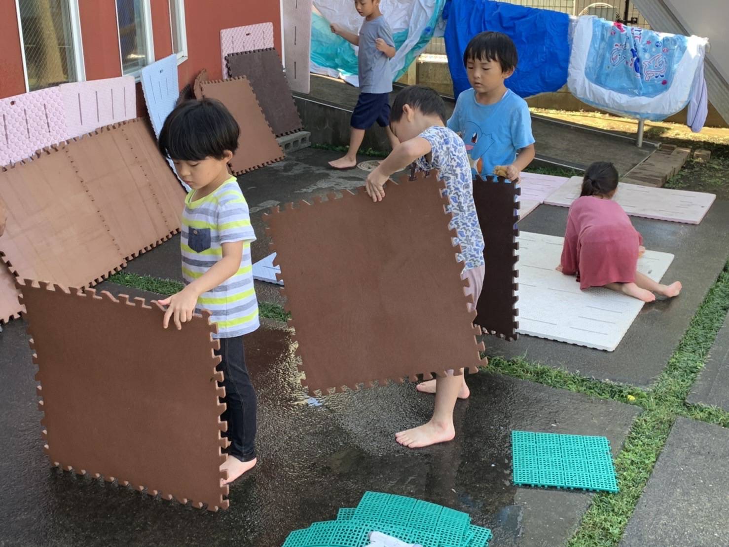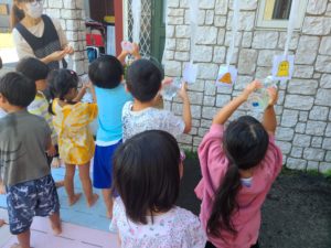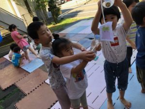 朝から気持ちよく晴れた青空の下、この夏もプール遊びができた事に感謝してみんなでプール納めを行いました。先週は曇り続きでなかなか水遊びもできませんでしたが、今日は最後の水遊びも楽しむことが出来て子ども達も満足した表情を見せていました。次の夏も楽しめるように最後は一番大きいお兄ちゃんお姉ちゃん達がプールマットをきれいに洗ってくれ無事にプール納めを終えることが出来ました☆