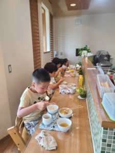 ☆手作りハンバーグ☆玄米入りご飯☆もやしと油揚げの味噌汁☆冷やしトマト☆茹でブロッコリー☆スティックチーズ☆みかん