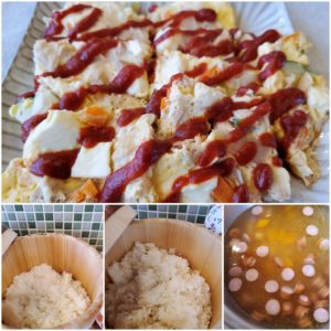 ☆ズッキーニとツナのオープンオムレツ☆玄米入りご飯/白米☆根菜とウインナーのスープ