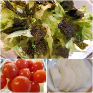 ☆レタスのりサラダ☆ミニトマト☆梨