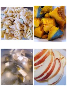 ☆マカロニサラダ☆蒸かし南瓜☆オクラとワカメの味噌汁☆リンゴ