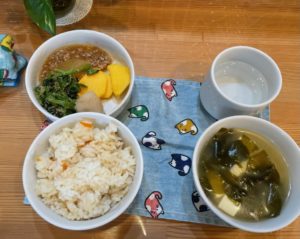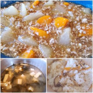 ☆ツナときのこの炊き込みご飯☆豆腐とわかめの味噌汁☆大根と挽肉のトロトロ煮