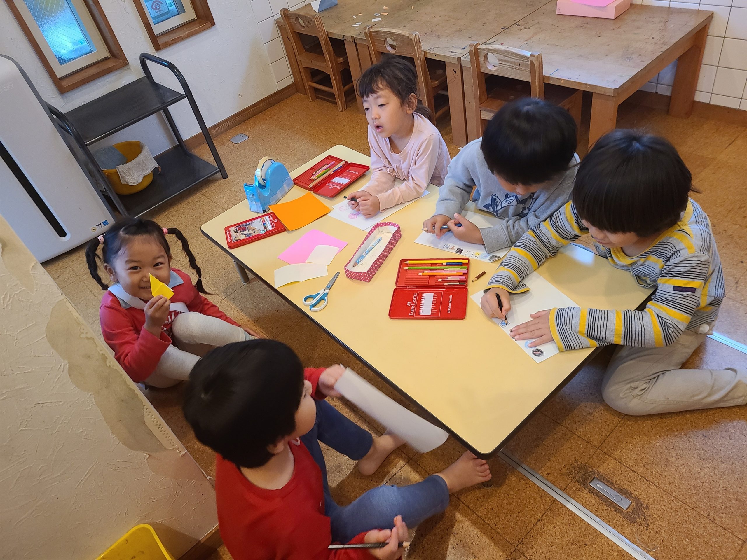 今日は長袖でも寒く感じるような一日でしたね💦そんな中、子ども達はお部屋の中で過ごしました!!それぞれ遊びを選んで楽しんでいた子ども達です😊