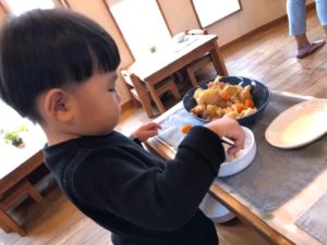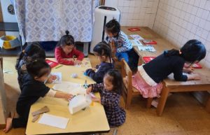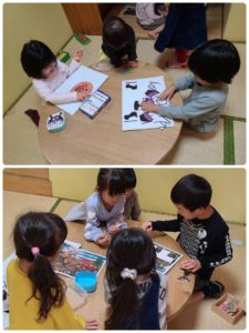 今日も外は冷たい雨…☔ 朝の集いで「アトリエには秋の塗り絵をプラスするよ」「中和室には新しいパズルを出すよ」とお部屋遊びの予定を伝えると、自分のやりたい事にむかって動き出す子ども達。