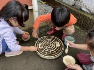 砂場では雨上がりの砂の感触を味わいながらじっくりと遊び込んでいました♪