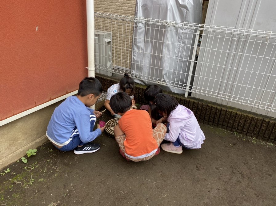 他にもにょろっと顔を出していたミミズを見つけたりと沢山の発見を楽しんでいた子ども達です😊