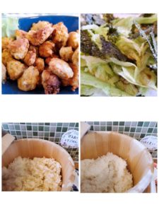 ☆鶏ひきと蓮根ふわふわ揚げ☆レタスのりサラダ☆玄米入りご飯☆玄米