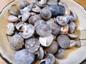 トップの写真がナガラミです🌀「うわーっカタツムリみたーい」と初めて見る貝に興味津々でした。茹でてみると色あせた分、模様がはっきりと見えるようになりその模様にも目を惹かれていました✨