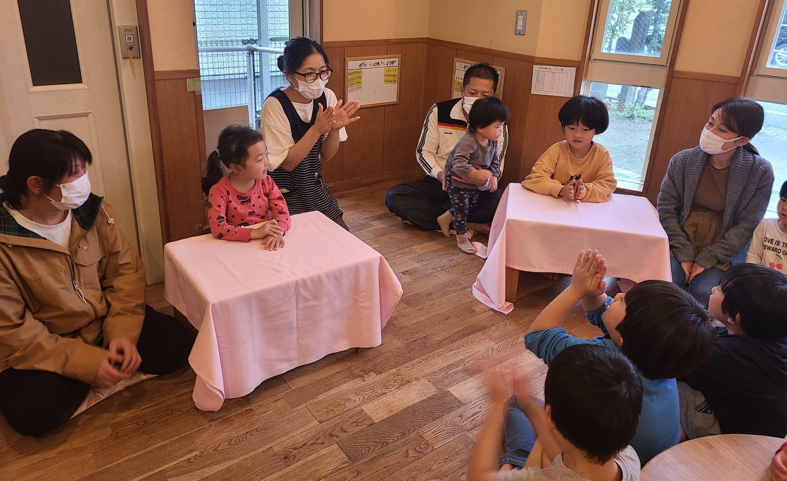 おやつの時間に年長さんのお兄ちゃんと年中さんのお姉ちゃんのお誕生日会を開きました☆