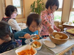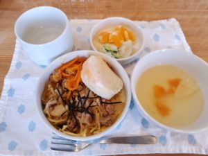 【後期】☆きのこの和風パスタ☆白パン☆根菜のスープ☆人参ツナ炒め☆里芋サラダ☆みかん