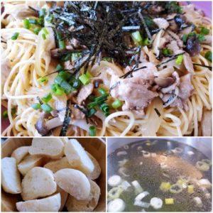 ☆きのこの和風パスタ☆白パン☆わかめと長葱のスープ